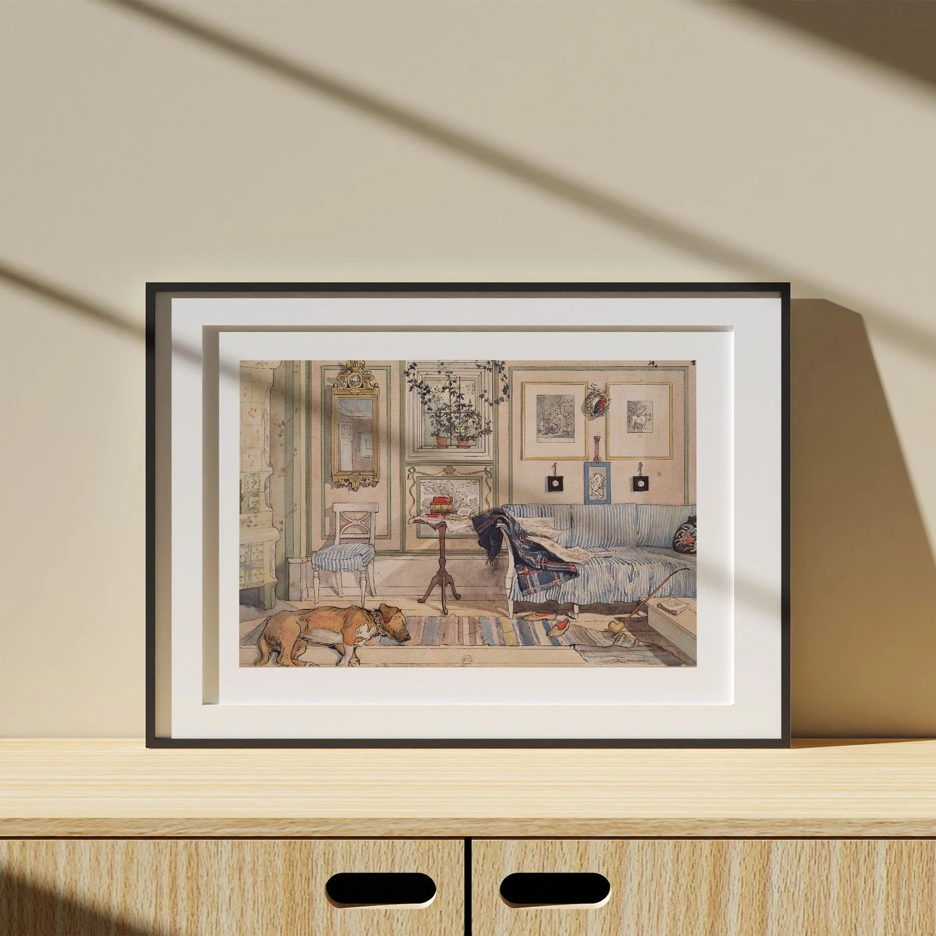Poster med mĂ„lningen Lathörnet frĂ„n akvarellsamlingen Ett hem av den svenska konstnĂ€ren Carl Larsson.Â