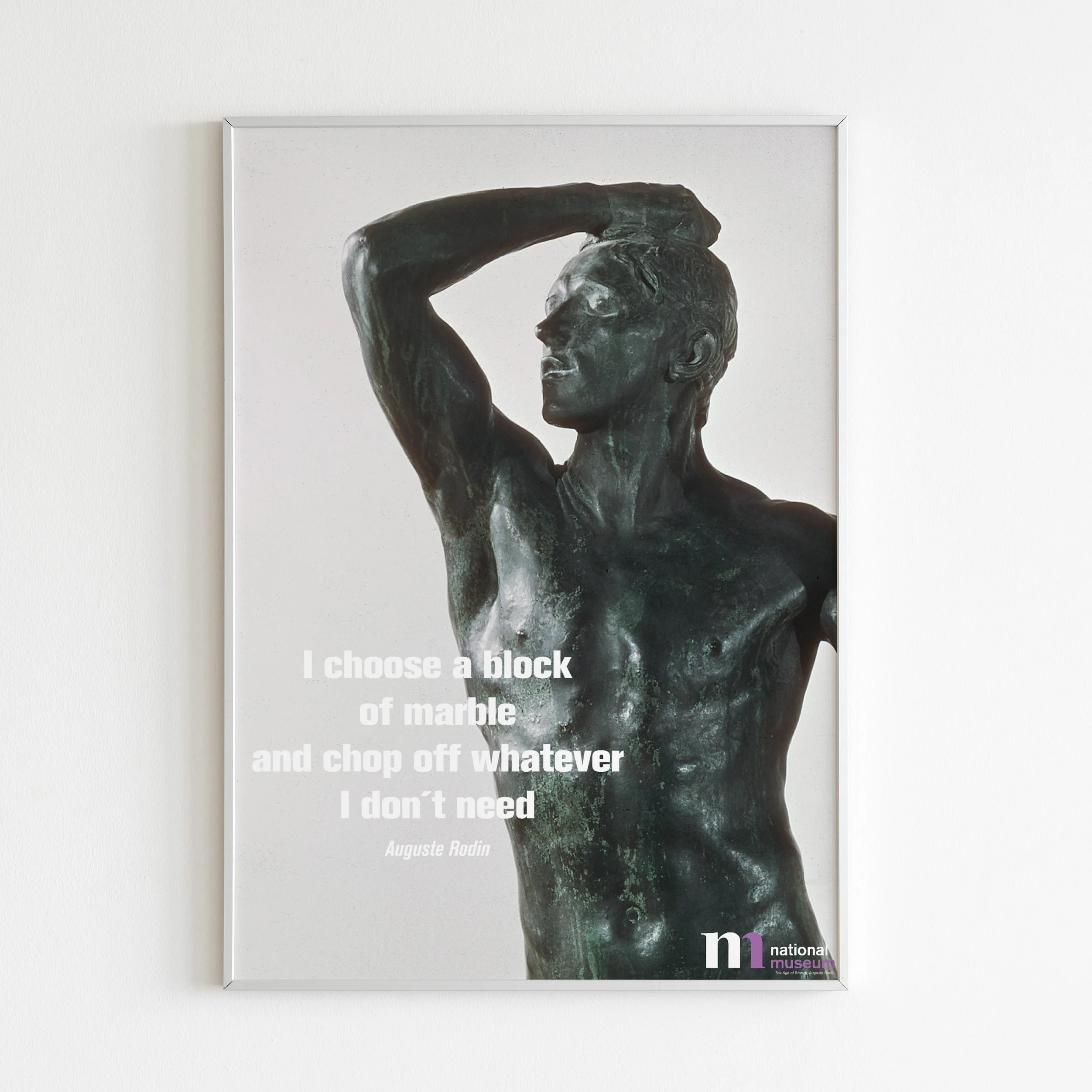Poster med citat av Auguste Rodin och detaljmotiv frÄn hans vÀlkÀnda skulptur BronsÄldern.